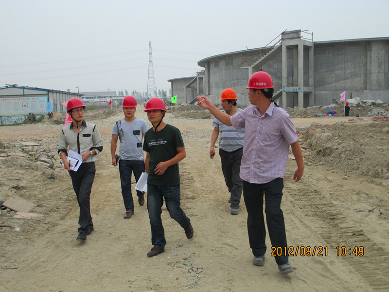 图为现场检查滨海印染产业集聚区污水集中预处理工地